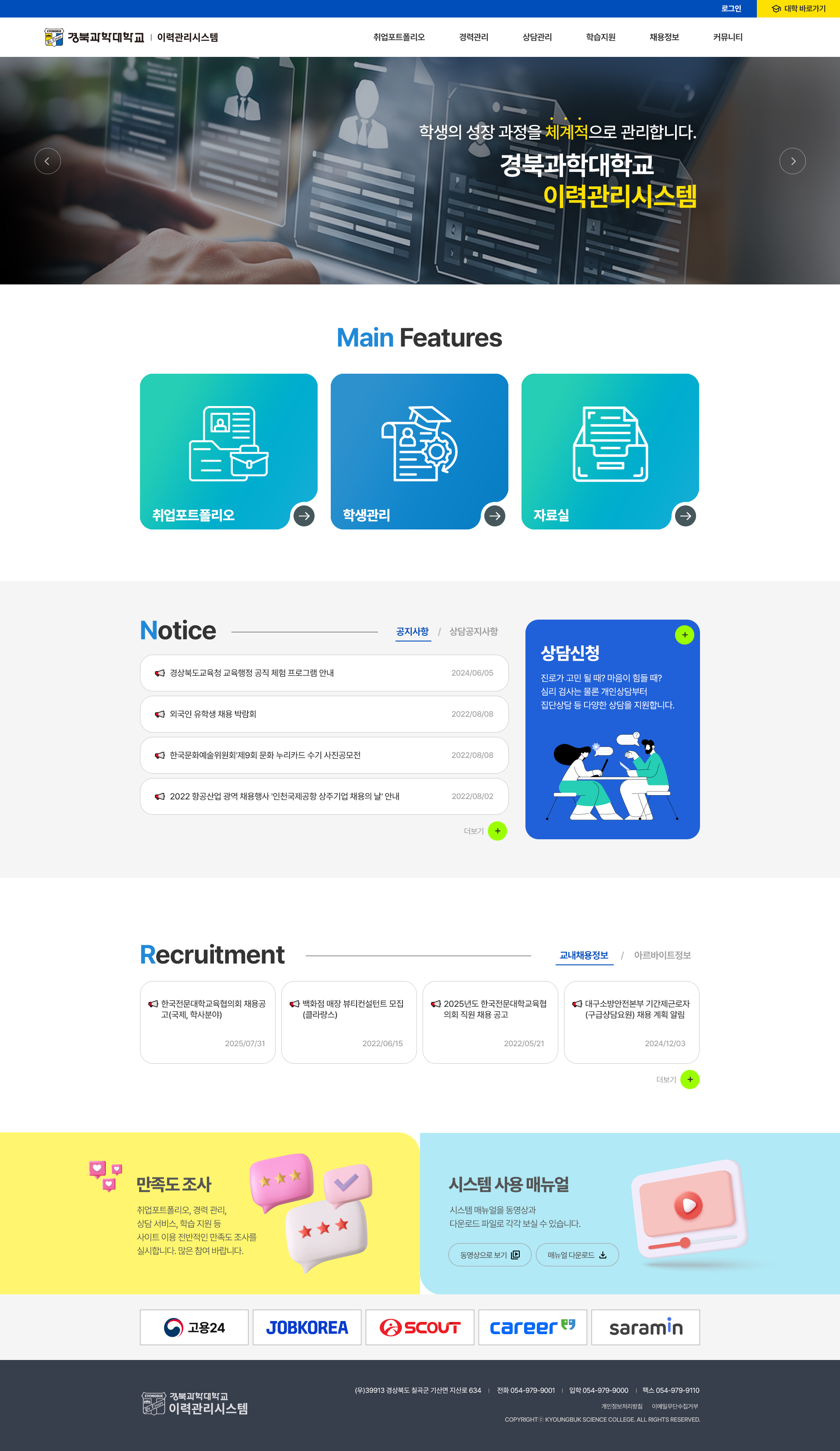 경북과학대학교 학생이력관리시스템 유지보수