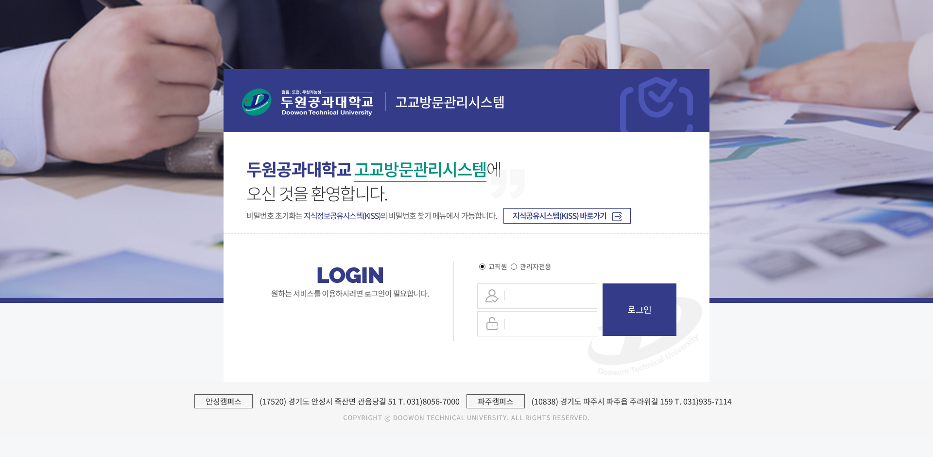 두원공과대학교총동문회 홈페이지 유지보수
