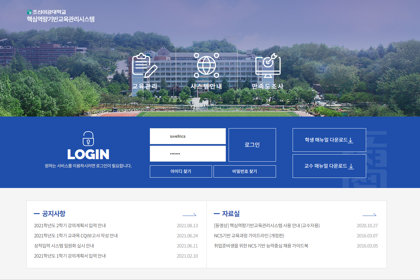 조선이공대 핵심역량기반 교육관리시스템 유지보수