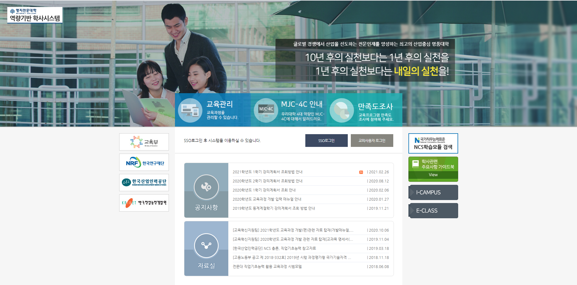 명지전문대학 역량기반 학사 정보시스템 유지보수