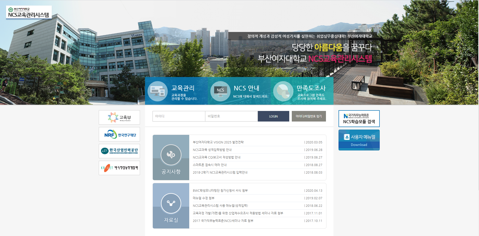 부산여자대학교 NCS기반 교육과정 운영시스템 유지보수