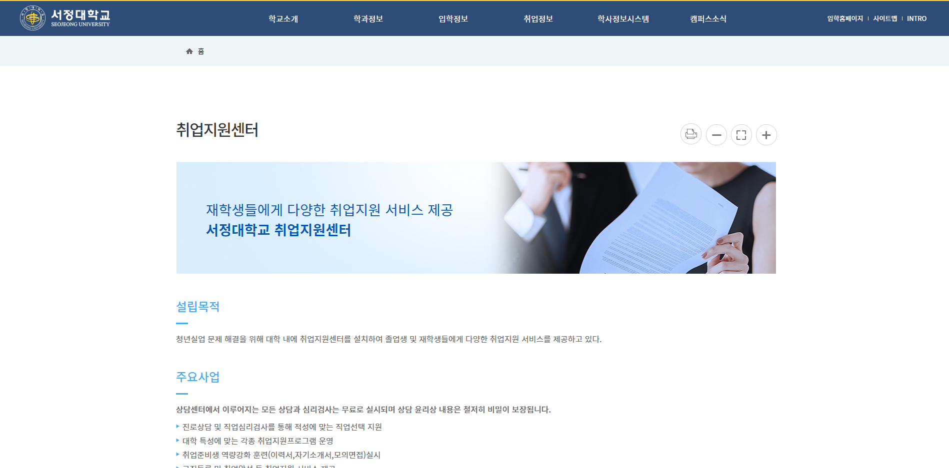 서정대학교 취업지원센터 홈페이지 및 SJ-CDP관리시스템 유지보수 |